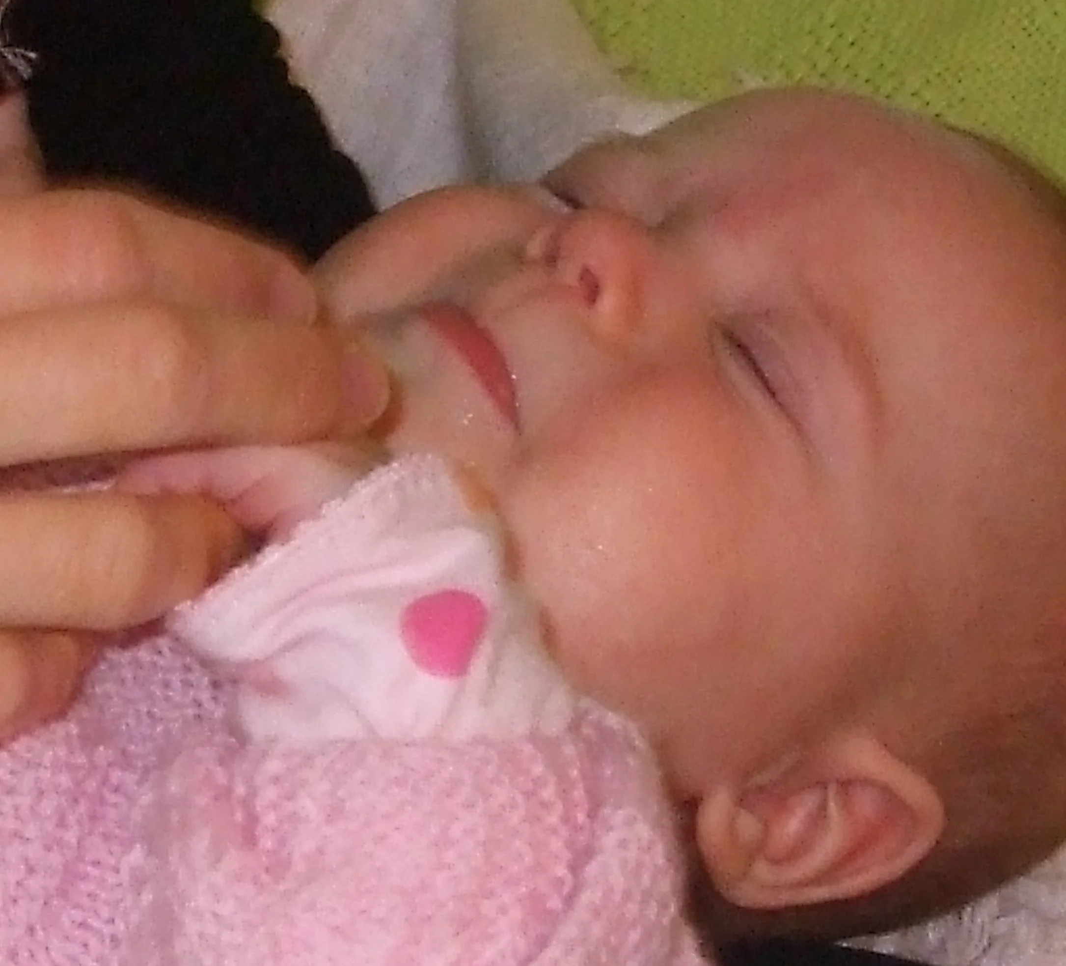 Pictured above, Krystal performed just as badly as her mother described, not even wanting to go near the breast, turning her head away, screwing her lips and eyes shut, pushing away from her mother and complaining loudly. Nothing was going to induce her to breastfeed. Then she happily drank a bottle of her mother’s expressed milk. It was all pretty devastating for Angie!